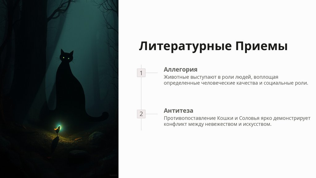 Противопоставление Кошки и Соловья ярко демонстрирует