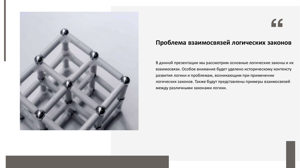 Проблема взаимосвязей логических законовВ данной презентации мы рассмотрим основные логические законы и их