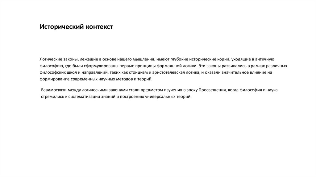 Исторический контекстЛогические законы, лежащие в основе нашего мышления, имеют глубокие исторические корни, уходящие в античную