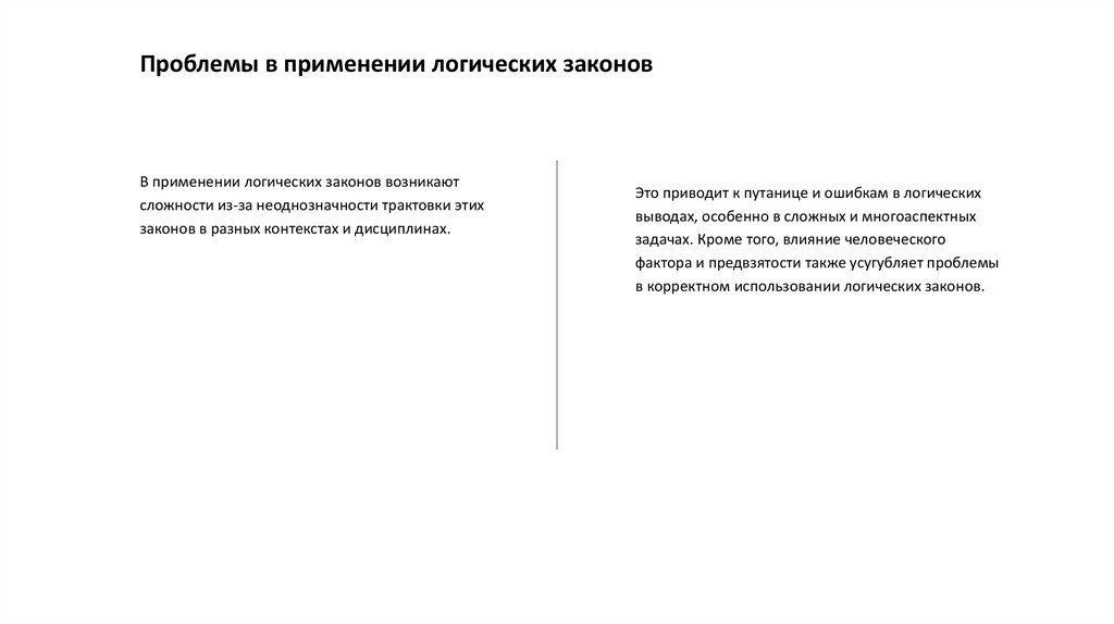 Проблемы в применении логических законовВ применении логических законов возникают