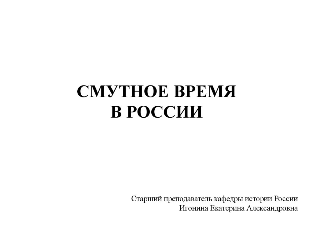 1. СМУТНОЕ ВРЕМЯ В РОССИИ