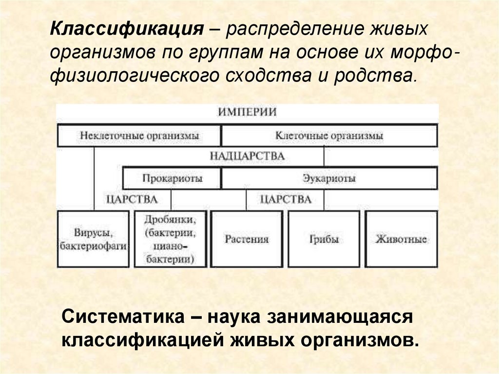 Классификация – распределение живыхорганизмов по группам на основе их морфофизиологического сходства и родства.