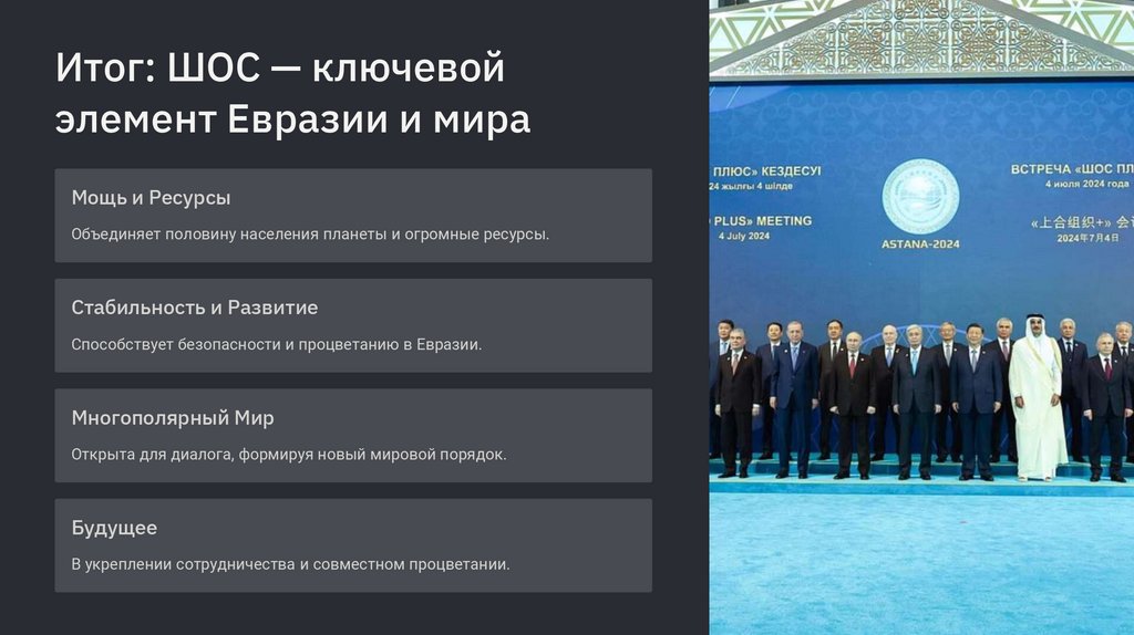 Итог: ШОС — ключевойэлемент Евразии и мира