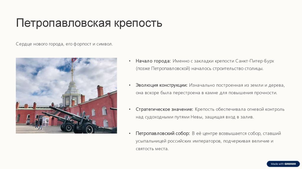 Петропавловская крепостьСердце нового города, его форпост и символ.