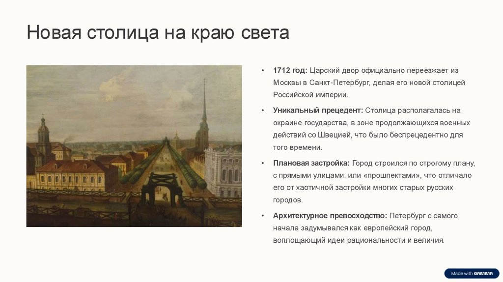 Новая столица на краю света1712 год: Царский двор официально переезжает из