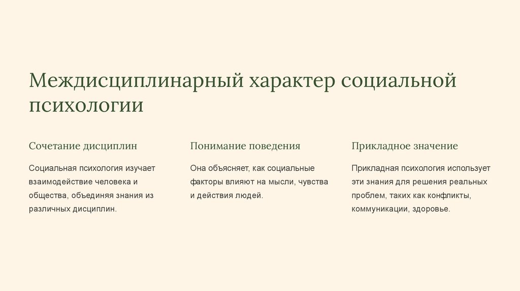 Современная социальная психология демонстрирует междисциплинарный подход, интегрируя знания из