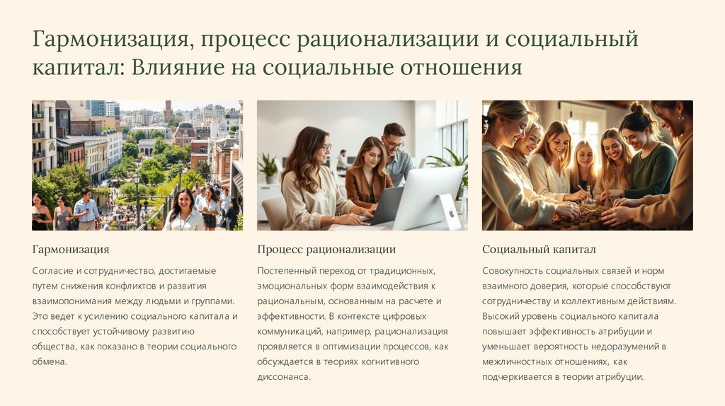 Гармонизация, процесс рационализации и социальныйкапитал: Влияние на социальные отношения