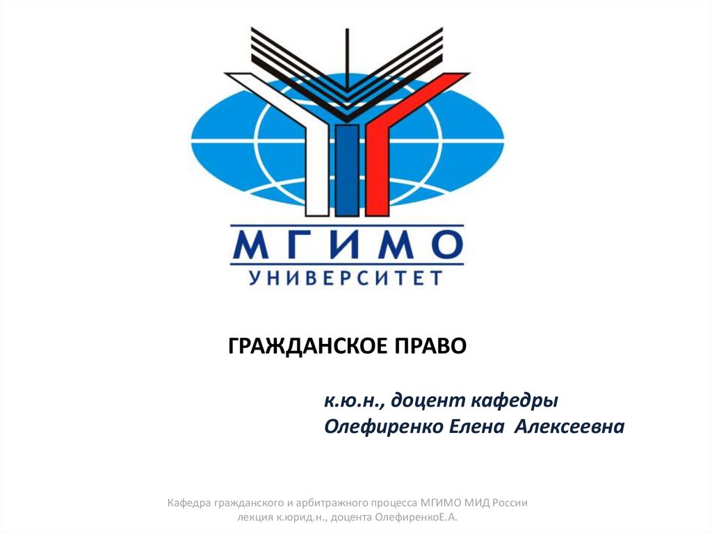 ГРАЖДАНСКОЕ ПРАВОк.ю.н., доцент кафедры