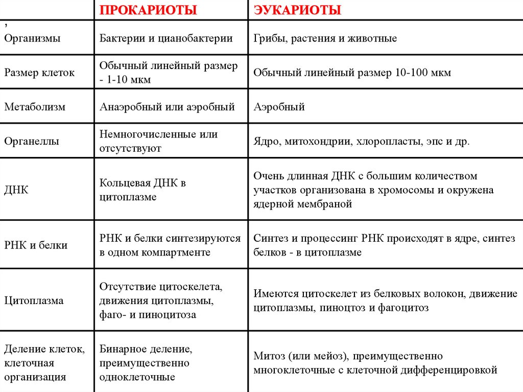 Различия в строении клеток эукариот и прокариот