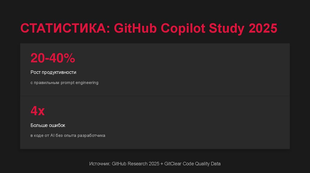 Источник: GitHub Research 2025 + GitClear Code Quality Data