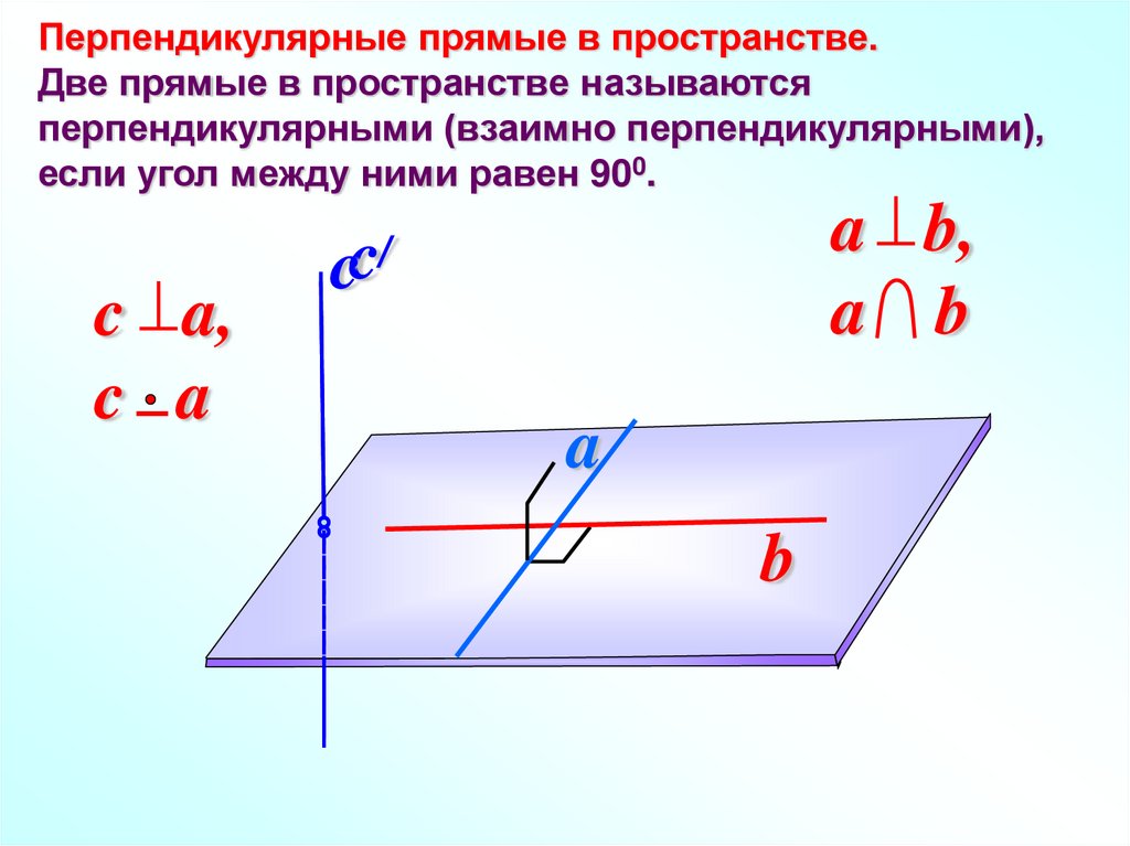 Перпендикулярные прямые в пространстве.Две прямые в пространстве называются