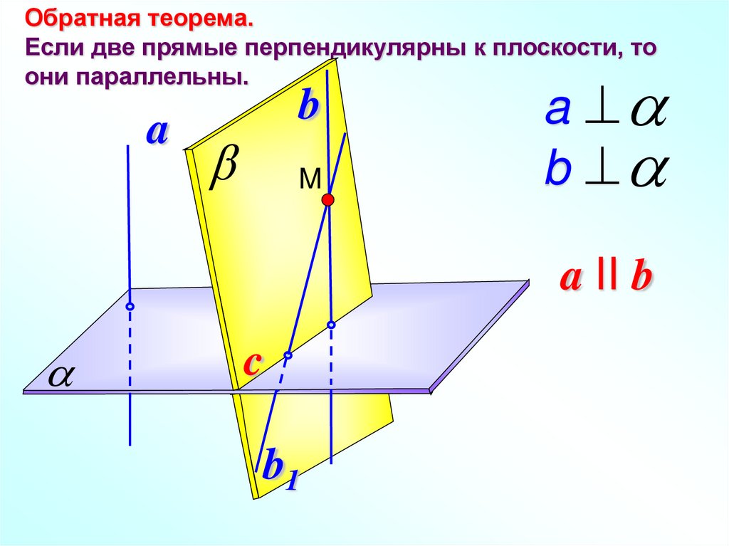 Обратная теорема.Если две прямые перпендикулярны к плоскости, то
