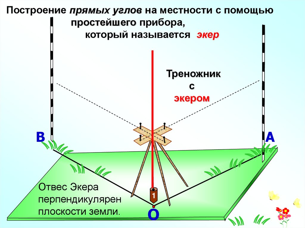 Построение прямых углов на местности с помощьюпростейшего прибора,