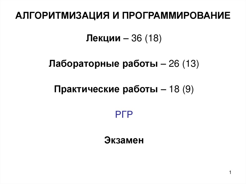 Лекции – 36 (18)Лабораторные работы – 26 (13)
