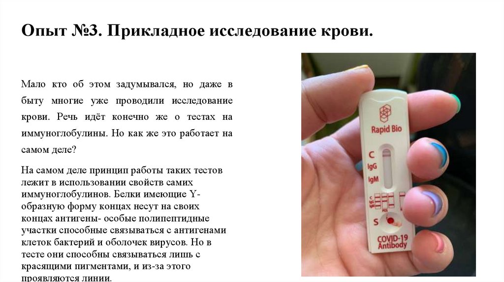 Опыт №3. Прикладное исследование крови.Мало кто об этом задумывался, но даже в