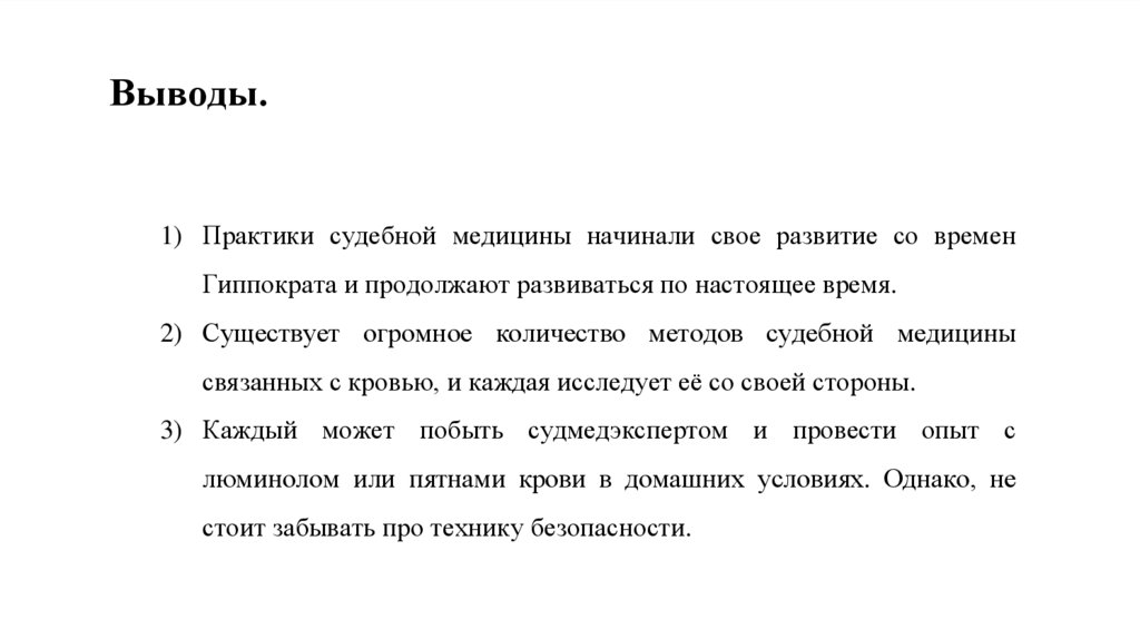 Выводы.1) Практики судебной медицины начинали свое развитие со времен