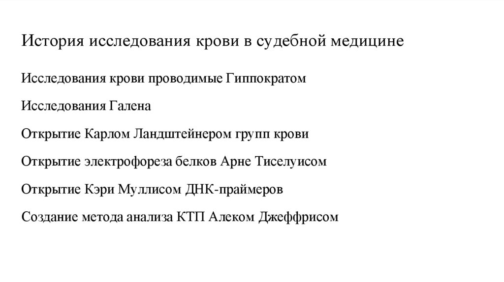 История исследования крови в судебной медицинеИсследования крови проводимые Гиппократом