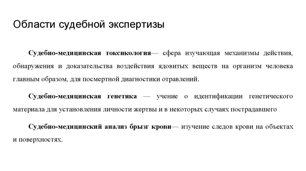 Области судебной экспертизыСудебно-медицинская токсикология— сфера изучающая механизмы действия,