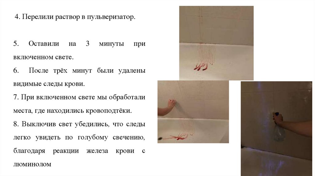 люминолом или пятнами крови в домашних условиях. Однако, не