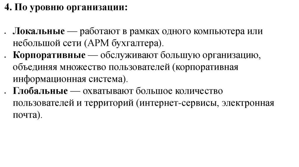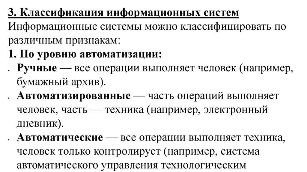 3. Классификация информационных системИнформационные системы можно классифицировать по