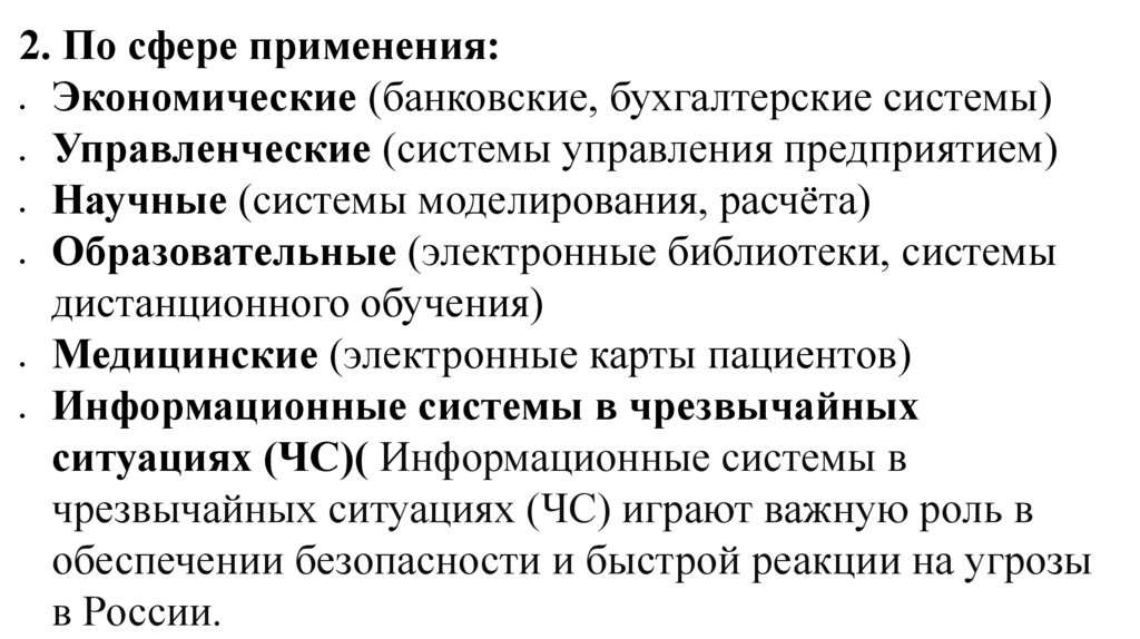 2. По сфере применения:Экономические (банковские, бухгалтерские системы)