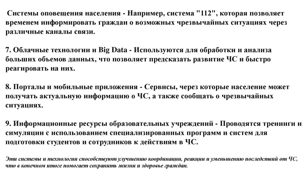 Системы оповещения населения - Например, система "112", которая позволяетвременем информировать граждан о возможных чрезвычайных ситуациях через