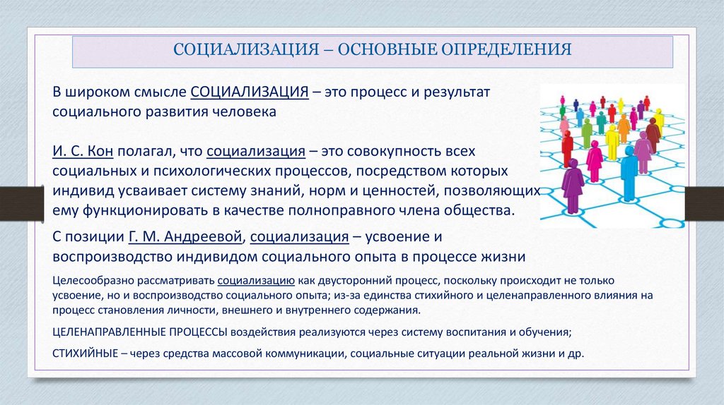 С позиции Г. М. Андреевой, социализация – усвоение и