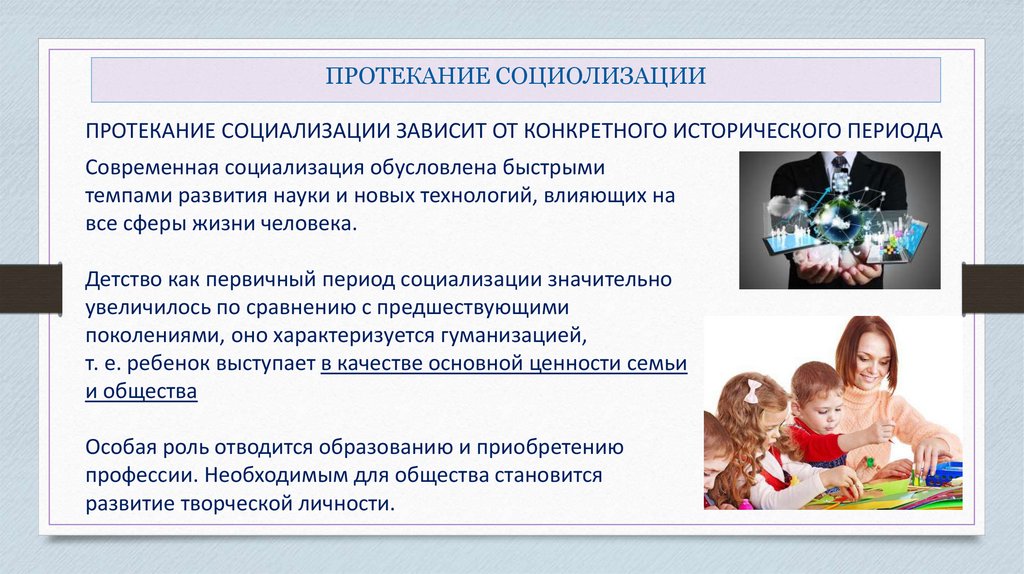 ПРОТЕКАНИЕ СОЦИОЛИЗАЦИИПРОТЕКАНИЕ СОЦИАЛИЗАЦИИ ЗАВИСИТ ОТ КОНКРЕТНОГО ИСТОРИЧЕСКОГО ПЕРИОДА