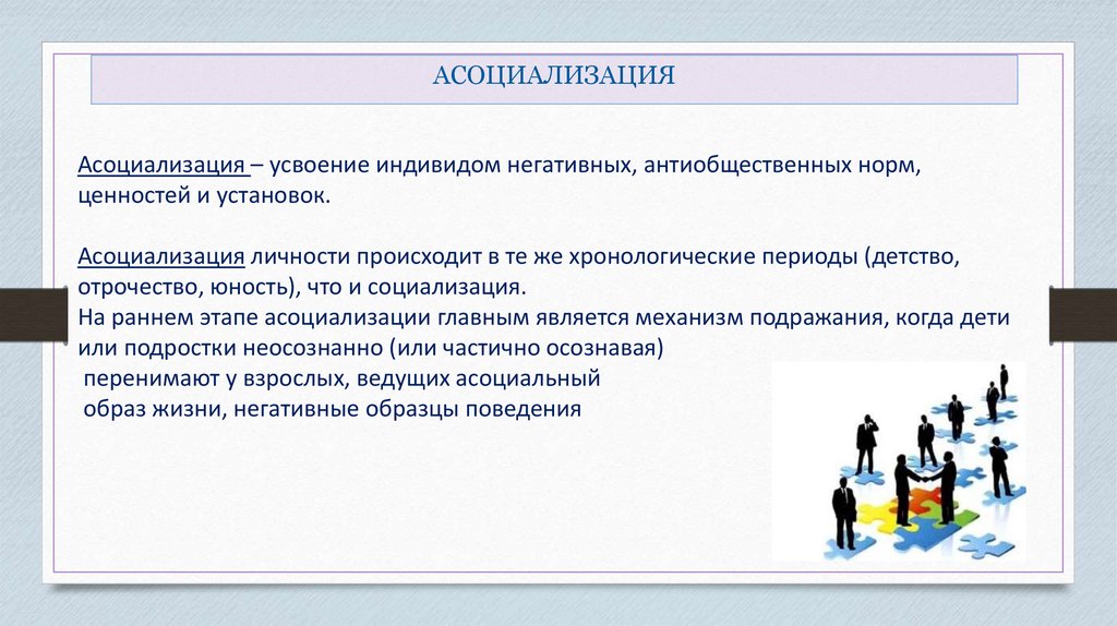 АСОЦИАЛИЗАЦИЯАсоциализация – усвоение индивидом негативных, антиобщественных норм,