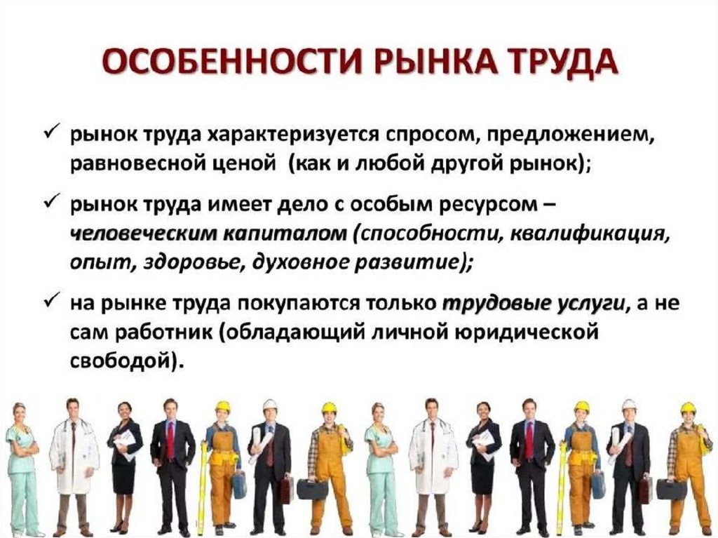 • Рынок труда – это сфера, в которой формируютсяспрос и предложение рабочей силы. Особенность