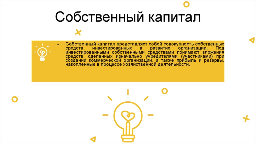 Собственный капиталСобственный капитал представляет собой совокупность собственных