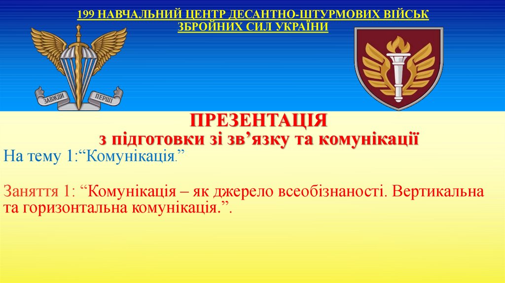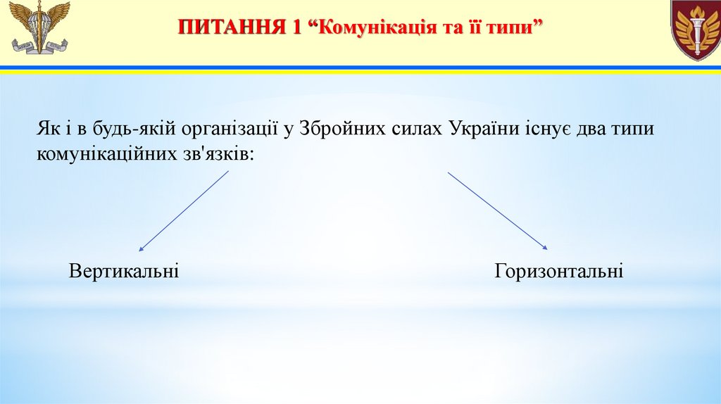 ПИТАННЯ 1 “Комунікація та її типи”Як і в будь-якій організації у Збройних силах України існує два типи