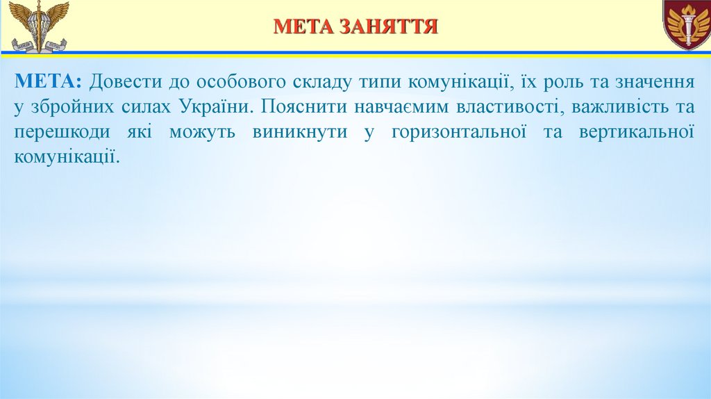 МЕТА ЗАНЯТТЯМЕТА: Довести до особового складу типи комунікації, їх роль та значення