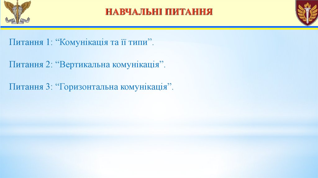 НАВЧАЛЬНІ ПИТАННЯПитання 1: “Комунікація та її типи”.