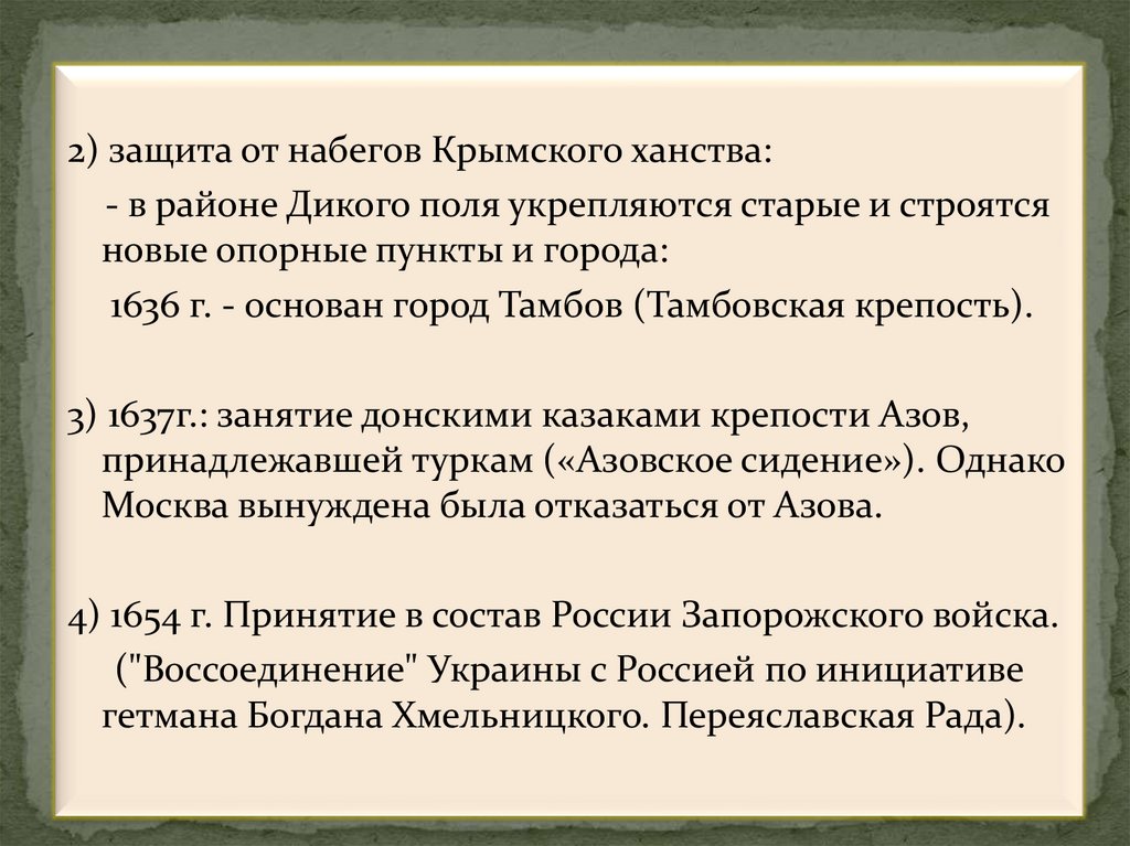 2) защита от набегов Крымского ханства:- в районе Дикого поля укрепляются старые и строятся