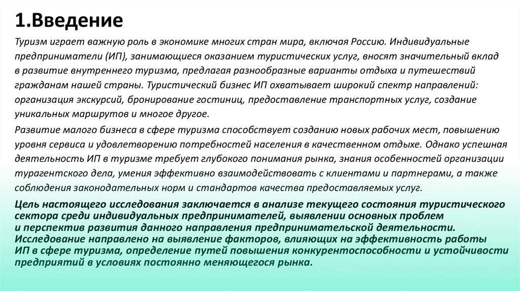 1.ВведениеТуризм играет важную роль в экономике многих стран мира, включая Россию. Индивидуальные