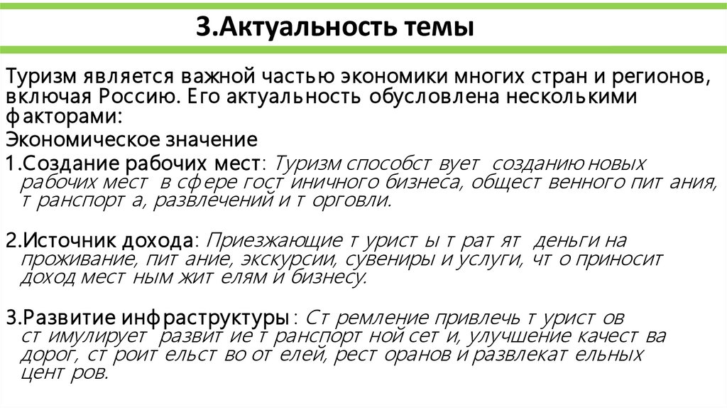 3.Актуальность темыТуризм явл яется важной часть ю экономики многих стран и регионов ,