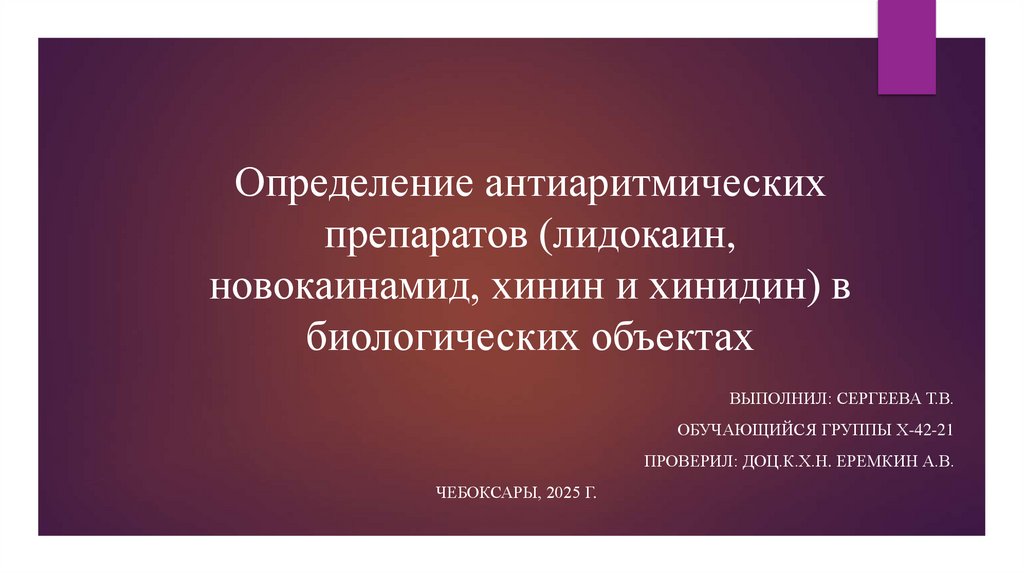 1. Определение антиаритмических препаратов (лидокаин, новокаинамид, хинин и хинидин) в биологических объектах