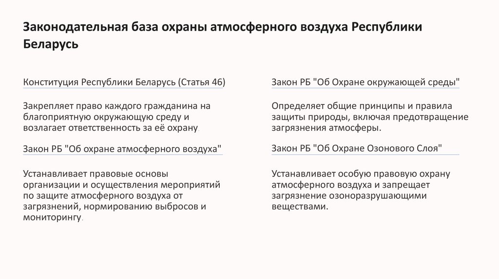 Законодательная база охраны атмосферного воздуха РеспубликиБеларусь