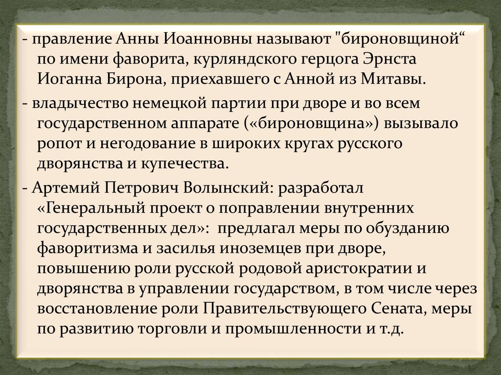 10. Правление Анны Иоанновны (1730-1740 гг.).