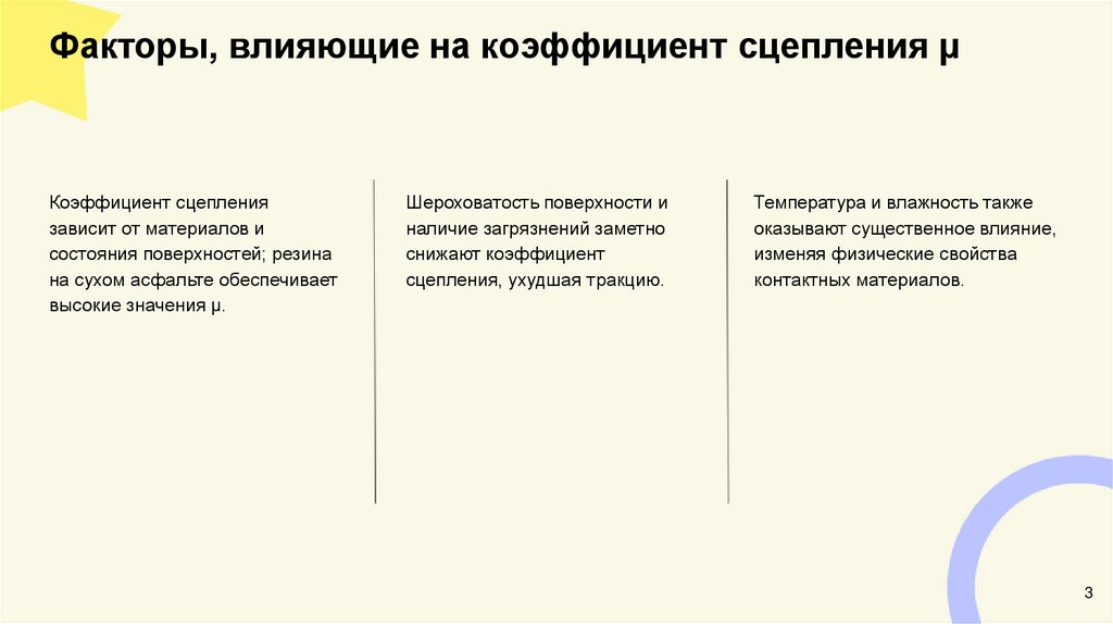 Факторы, влияющие на коэффициент сцепления μКоэффициент сцепления