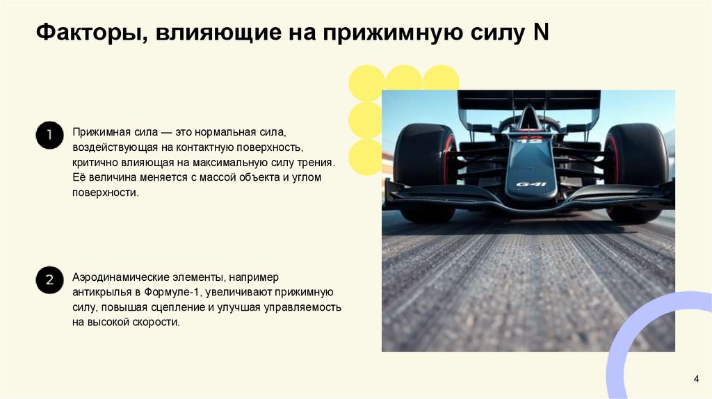 Факторы, влияющие на прижимную силу NПрижимная сила — это нормальная сила,