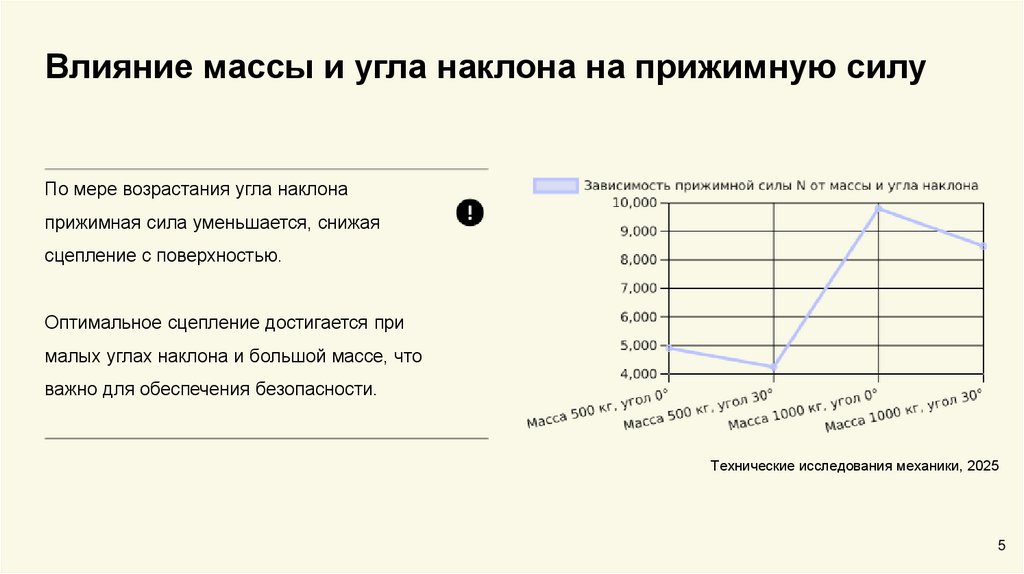 Влияние массы и угла наклона на прижимную силуПо мере возрастания угла наклона