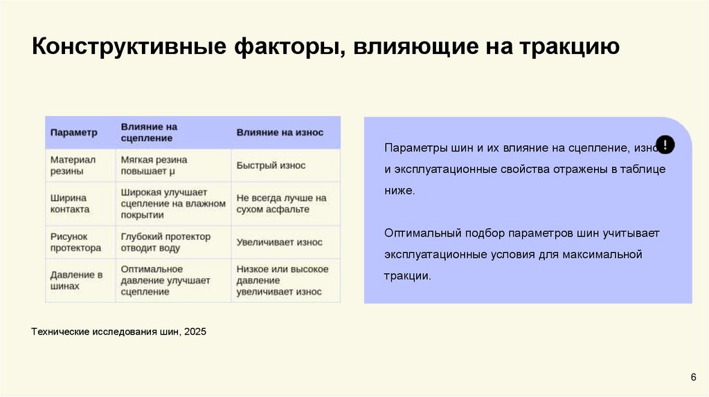 Конструктивные факторы, влияющие на тракциюПараметры шин и их влияние на сцепление, износ