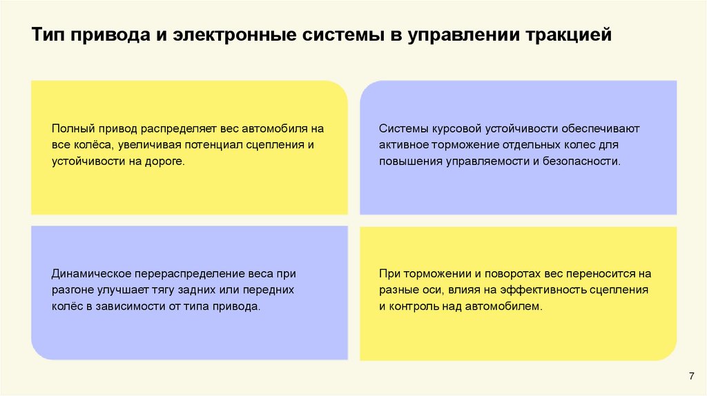 Тип привода и электронные системы в управлении тракциейПолный привод распределяет вес автомобиля на