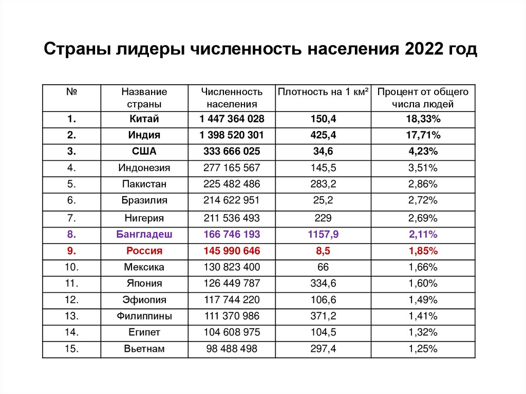 Страны лидеры численность населения 2022 год№