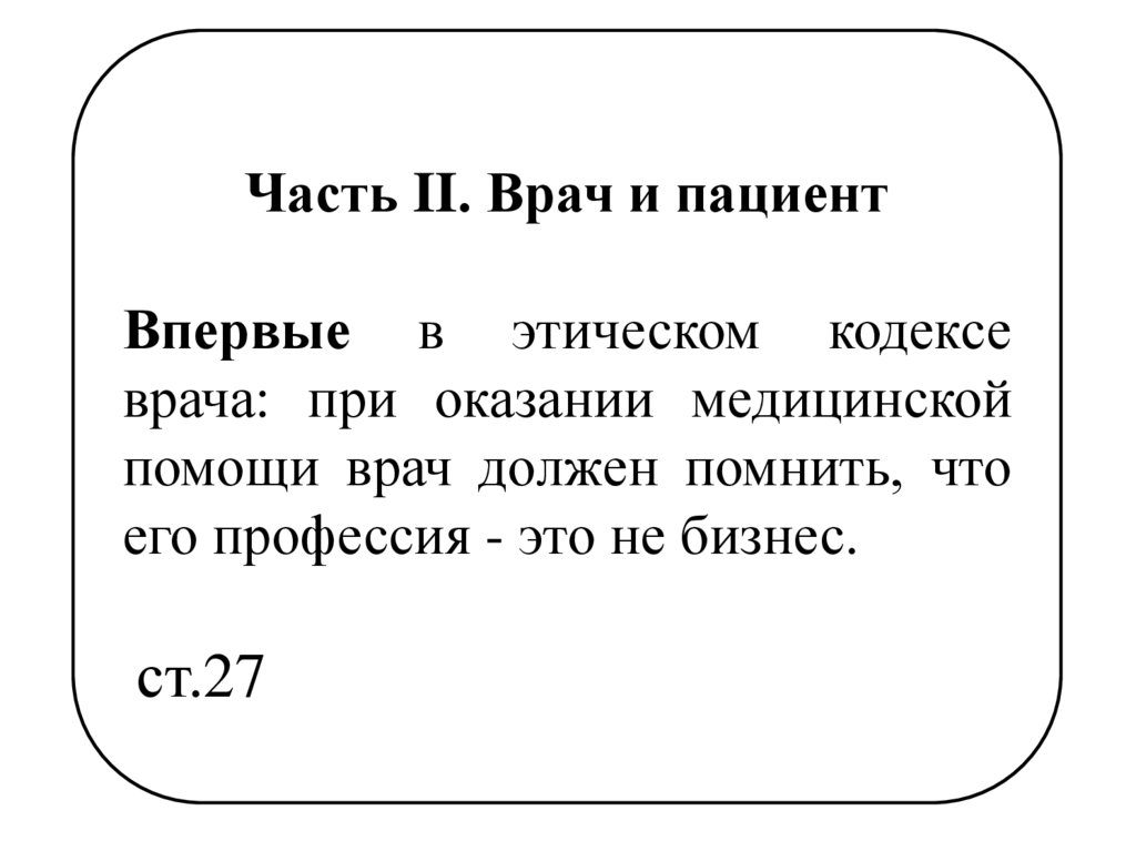 Часть II. Врач и пациентВпервые в этическом кодексе