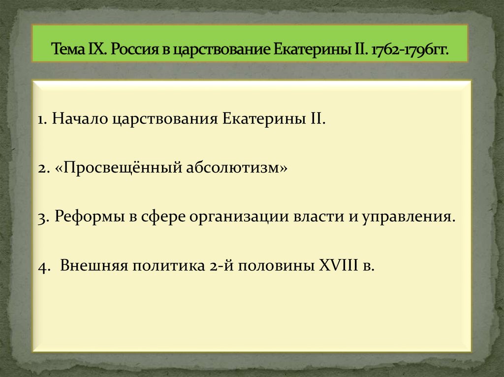 1. Тема IX. Россия в царствование Екатерины II. 1762-1796гг.