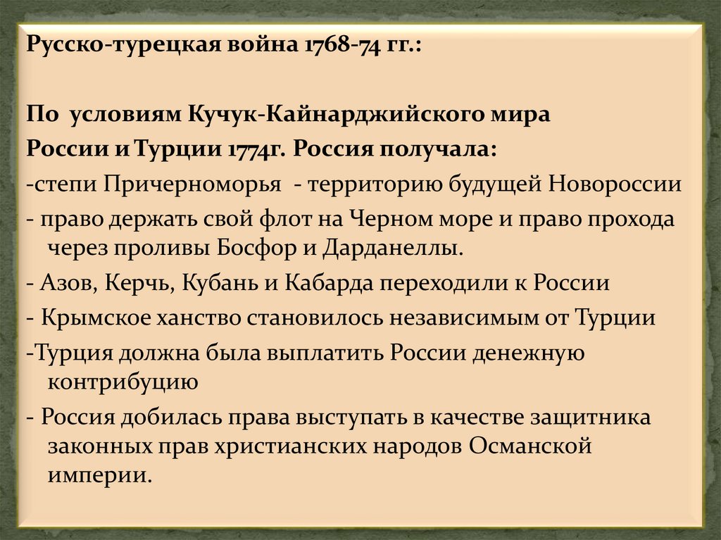 Русско-турецкая война 1768-74 гг.:По условиям Кучук-Кайнарджийского мира