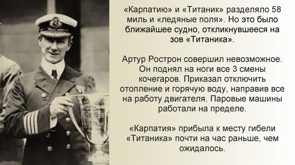 «Карпатию» и «Титаник» разделяло 58миль и «ледяные поля». Но это было